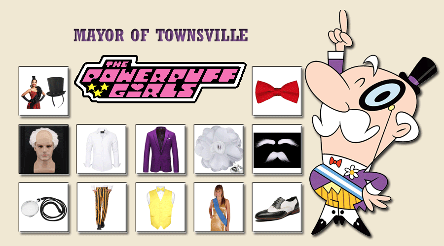 In the Powerpuff Girls, the Mayor of Townsville, voiced by Tom Kenny, is one of the funniest characters in the series. Since 2016, fans have loved how this small, elderly man calls the girls through the city’s network whenever there’s danger—or just when he can’t open a jar of pickles. Mr. Mayor may not be very smart, but he always means well. In fact, without the girls, Townsvilles would be in constant chaos. His role adds both comedy and heart to the show. Furthermore, his costume is easy to recognize: a purple jacket, gold pinstriped pants, and a monocle. You can play as him at Halloween or in an adult costume party. Take note of these facts if you want a better cosplay. Just add a toy car, and you’ll feel the bliss of being him. Perfect for ages 2, 3, or 4 and up! Collect accessories of the Mayor of Townville costume.